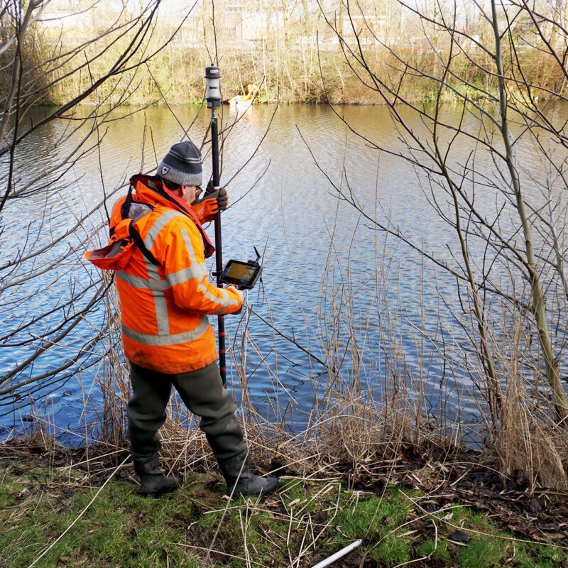 Wij winnen alle dwarsprofielen in, ook de profielen van moeilijk bereikbare locaties. De beste periode om deze data in te winnen is in de winter. Dit komt doordat de bomen en bosjes dan weinig tot geen bladeren bevatten en daardoor niet tot last zijn voor het signaal van de GPS en het Total Station. Ook zijn er bijna geen mensen aan de oevers of op het water. Waardoor het inwinnen snel en soepel verloopt.